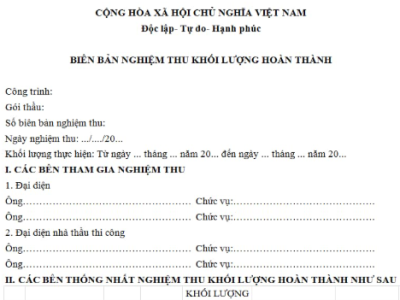 BIÊN BẢN NGHIỆM THU KHỐI LƯỢNG HOÀN THÀNH XÂY DỰNG LÀ GÌ?